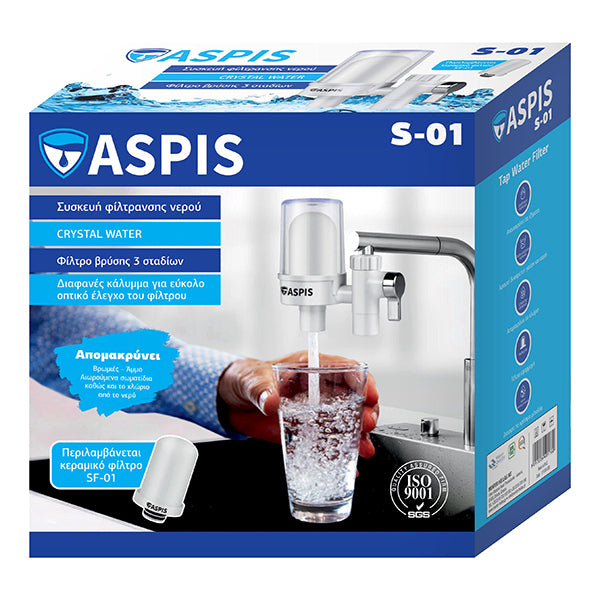 Aspis S-01 Φίλτρο Νερού Βρύσης Λευκό Κεραμικό με Διάφανο Καπάκι