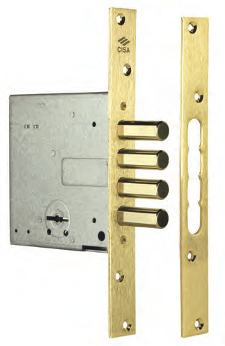 Cisa 57028-60 Κλειδαριά Ασφαλείας Ξύλινης Πόρτας Χωρίς Γλώσσα 3 Κλειδιά Χρηματοκιβωτίου 4 Πείρων 4 Στροφών Χρυσή 60mm