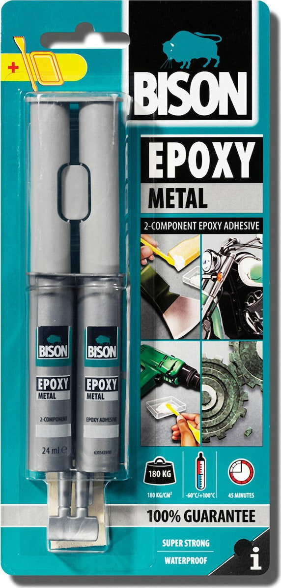 Bison Epoxy Α-Β Εποξειδική Κόλλα 2 Συστατικών Μετάλλων Γκρι Σύριγγα 24ml(12-12ml)