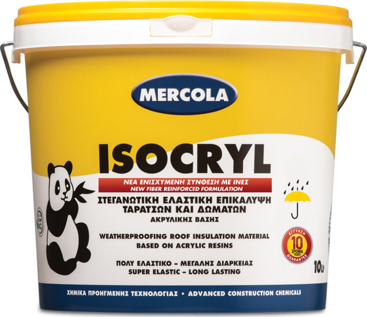 Το ISOCRYL είναι υψηλών προδιαγραφών ελαστομερές, επαλειφόμενο, υδατοδιαλυτό στεγανωτικό υλικό ενός συστατικού, καθαρής ακρυλικής βάσης με νέα ενισχυμένη ινοπλισμένη σύνθεση για υψηλές αντοχές. Προσφέρει εξαιρετική αντοχή στις καιρικές συνθήκες. Προστατεύει παλαιές και νέες επιφάνειες με μια ενιαία υδρατμοδιαπερατή ελαστική μεμβράνη υψηλής αντοχής στην υγρασία, στις υψηλές θερμοκρασίες και στις ακτίνες UV.