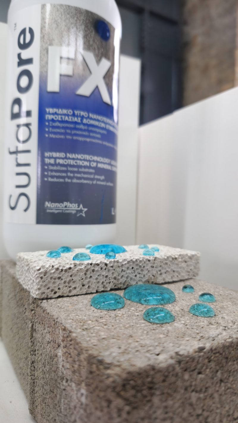 Το SurfaPore FX WB είναι ένα υδατικό εναιώρημα κατάλληλο για την ενίσχυση των μηχανικών αντοχών των οικοδομικών επιφανειών και τη σταθεροποίηση των σαθρών, ευαίσθητων επιφανειών, ενώ συγχρόνως τις αδιαβροχοποιεί. Ο ανόργανος χαρακτήρας του υλικού εξασφαλίζει τη χημική συμβατότητα και την ευκολία εφαρμογής με τα δομικά υλικά. Μετά την εφαρμογή και τη διείσδυσή στο υπόστρωμα, σχηματίζεται ένα πυκνό τρισδιάστατο δίκτυο, το οποίο ενισχύει τις μηχανικές ιδιότητες των αποσαθρωμένων ή “ευαίσθητων” επιφανειών. Η φυσική εμφάνιση, το πορώδες και η διαπνοή των τροποποιημένων επιφανειών παραμένουν ανεπηρέαστα. To SurfaPore FX WB δημιουργεί μία συνεχή και συνεκτική δομική επιφάνεια με αυξημένη αντοχή σε όξινο περιβάλλον. Η ευκολία εφαρμογής εξασφαλίζει τον τριπλό ρόλο του SurfaPore FX WB: Χρησιμοποιείται για την αδιαβροχοποίηση, προστασία αλλά και την επιδιόρθωση ήδη αποσαθρωμένων οικοδομικών επιφανειών με μεγάλο χρόνο ζωής και δράσης.