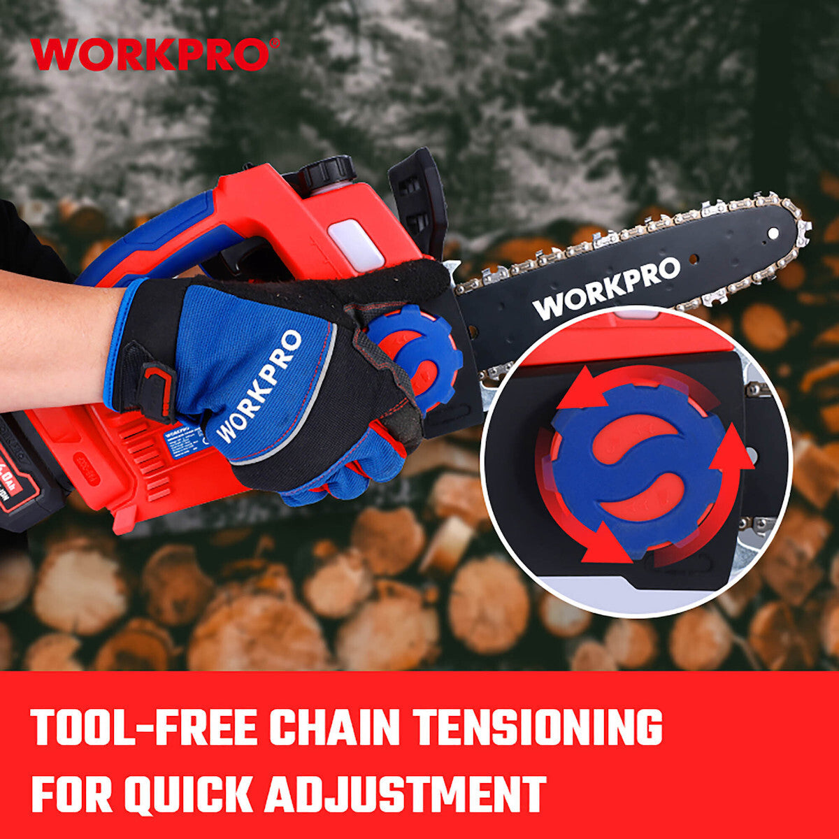 WorkPro WP391601 Επαναφορτιζόμενο Αλυσοπρίονο Κλαδευτικό (250mm) 20V-Li BL (2×4,0AH)